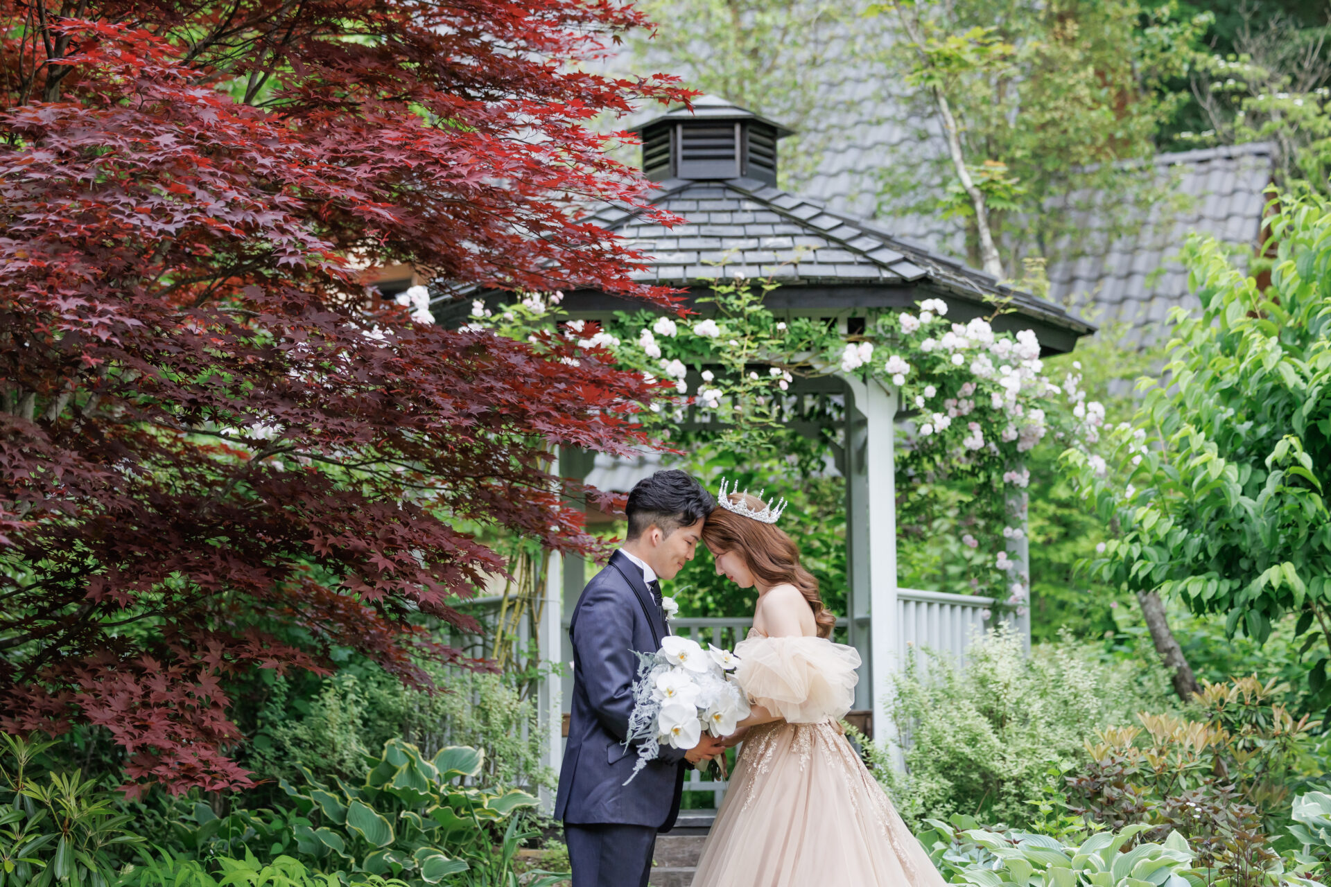 愛が実る日のフィナーレは 新緑を潤す雨の中で幻想的に♥
