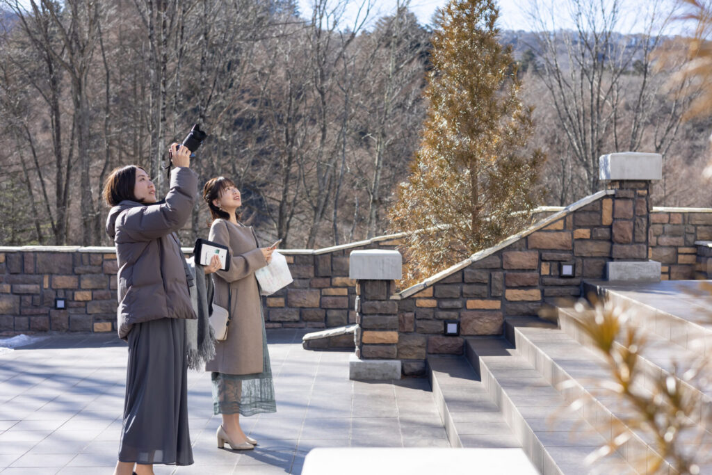 当日は晴天の中、山好きなおふたりにぴったりな山凪の教会からの「雄大な浅間山」の景色でしたね!