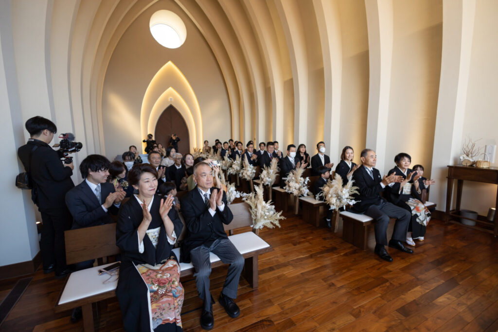 木漏れ日が差し込むチャペルで、大切な人たちと想いを分かち合った温かな誓いの時間。