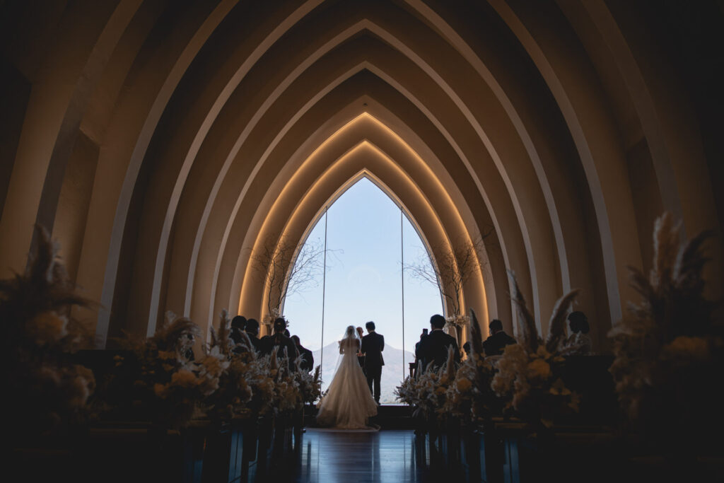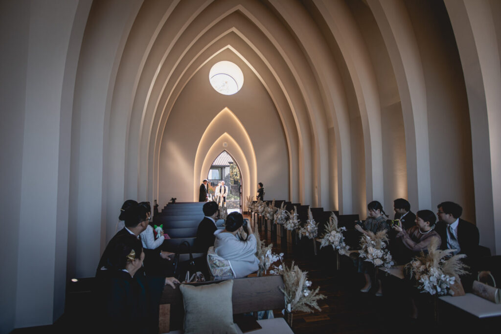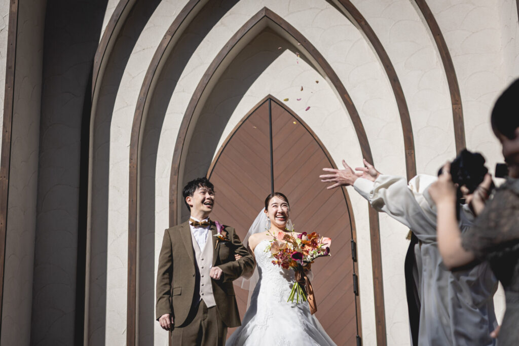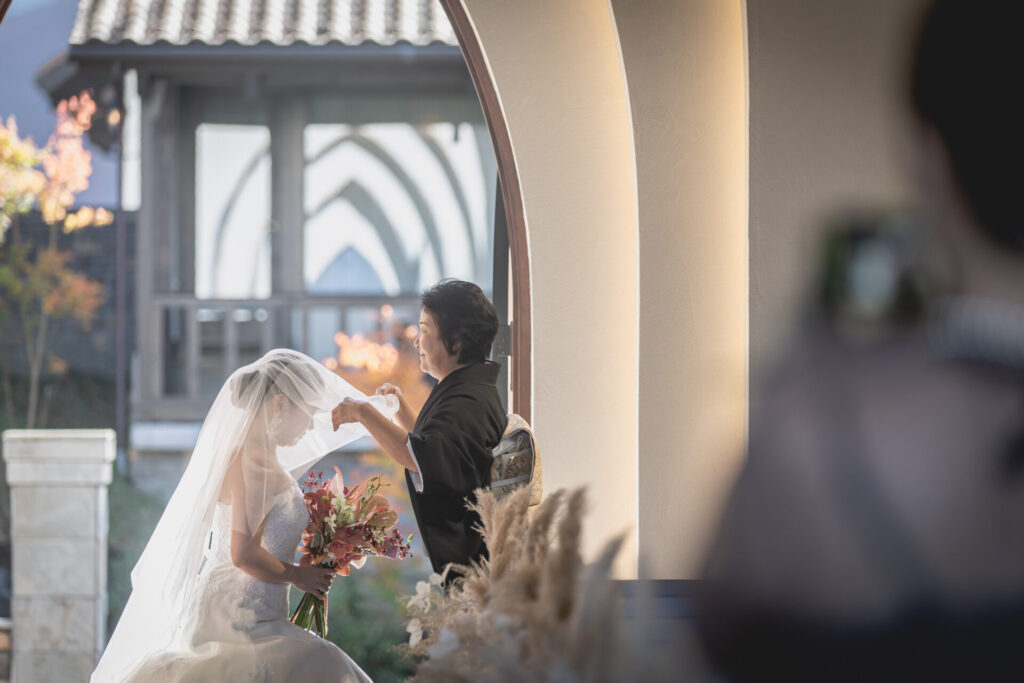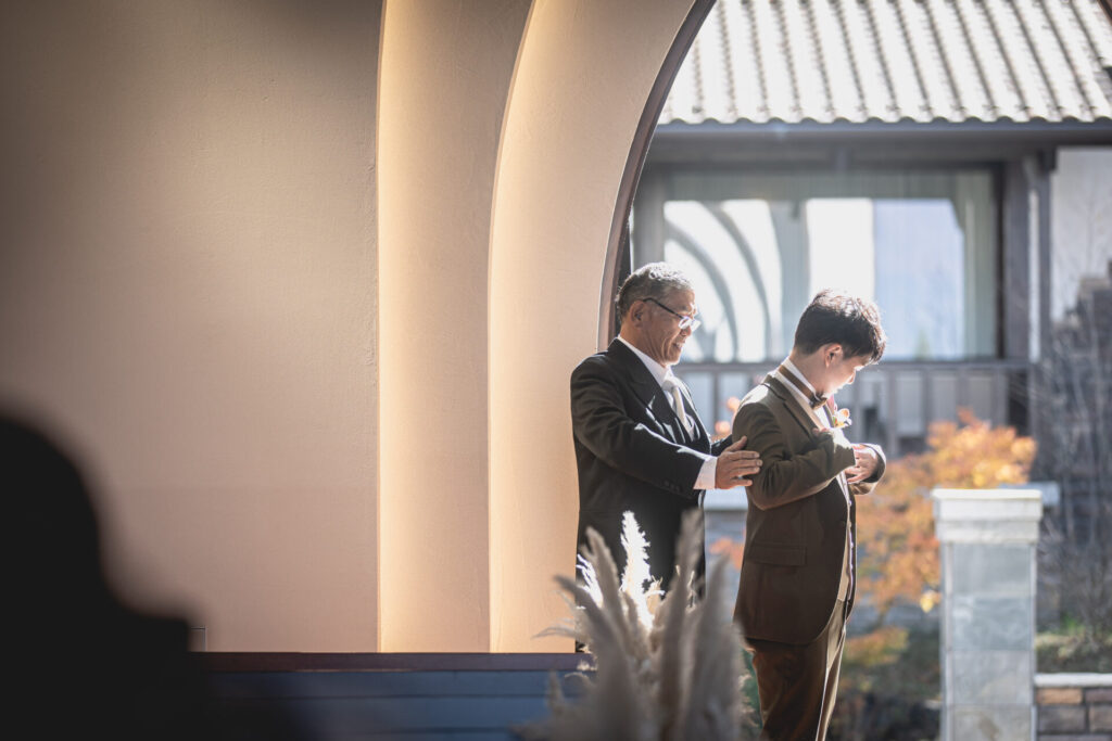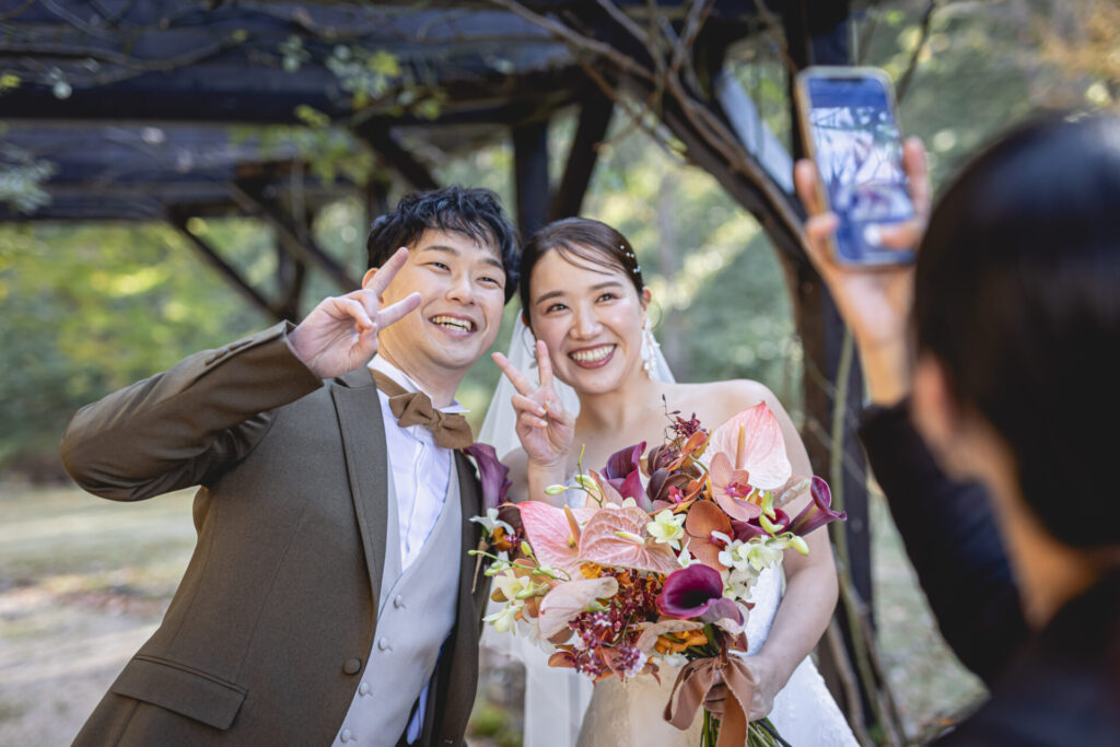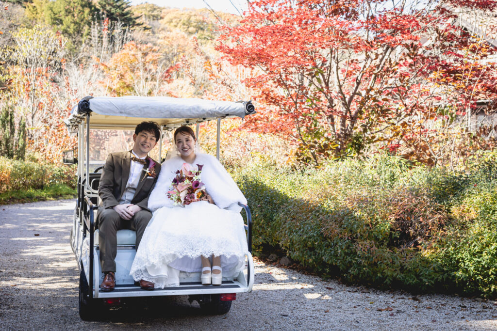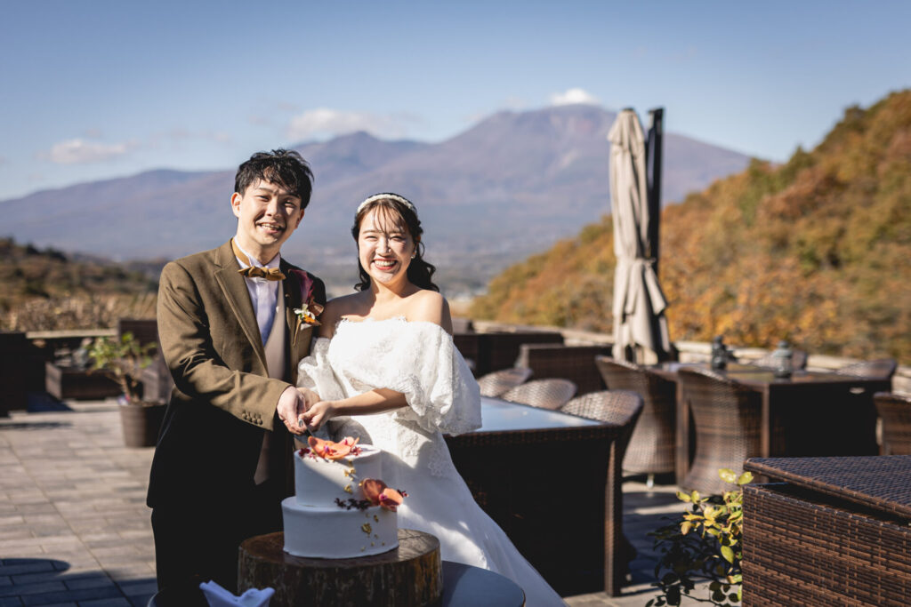 冬の訪れを感じる澄んだ空気の中、木々がほんのり色づく軽井沢ウエディング。