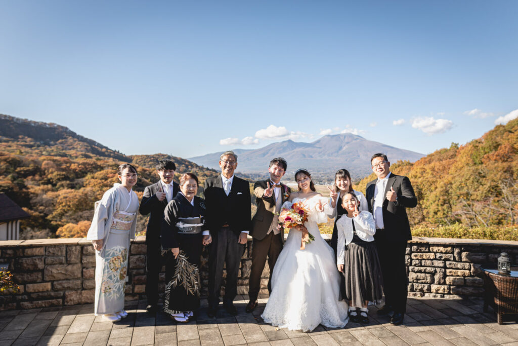 色づく紅葉に包まれ、家族と共に交わした心温まる誓いの時間。