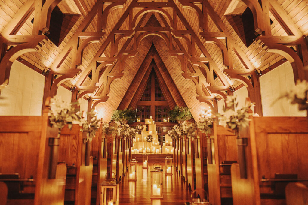 木の温もりと暖かみあるキャンドルの灯の中で特別な挙式が叶う。
