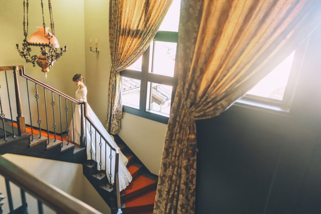 クラシカルな階段で、映画のワンシーンのような写真を。